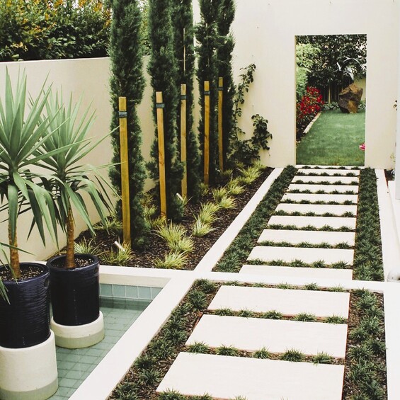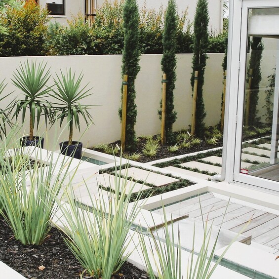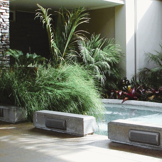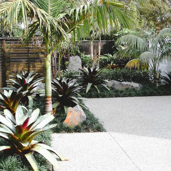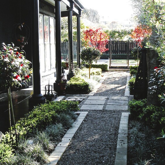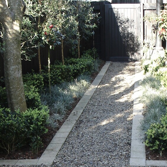 Concrete & aggregate paving designs were introduced to add texture, terracing created layering & improved transition between the spaces.